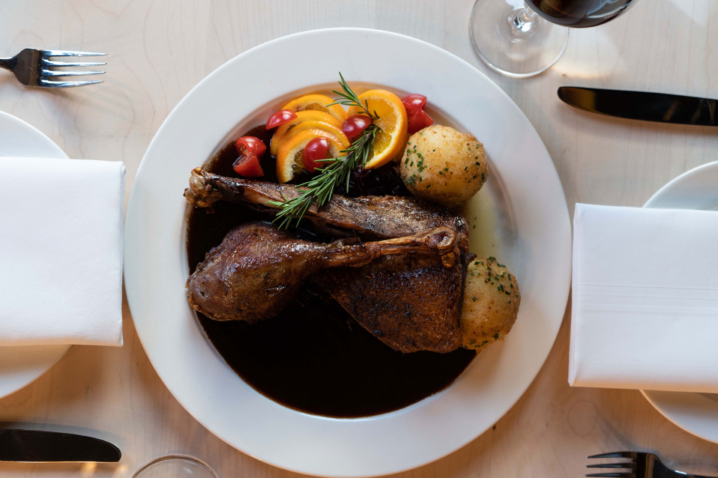 Im Herbst trifft Kürbis von den regionalen Feldern Brandenburgs auf Wild aus heimischen Jagdrevieren. Unsere Herbstspeisekarte lädt zum Genießen ein. Und auch ein Glas Wein schenken wir dazu gern ein.