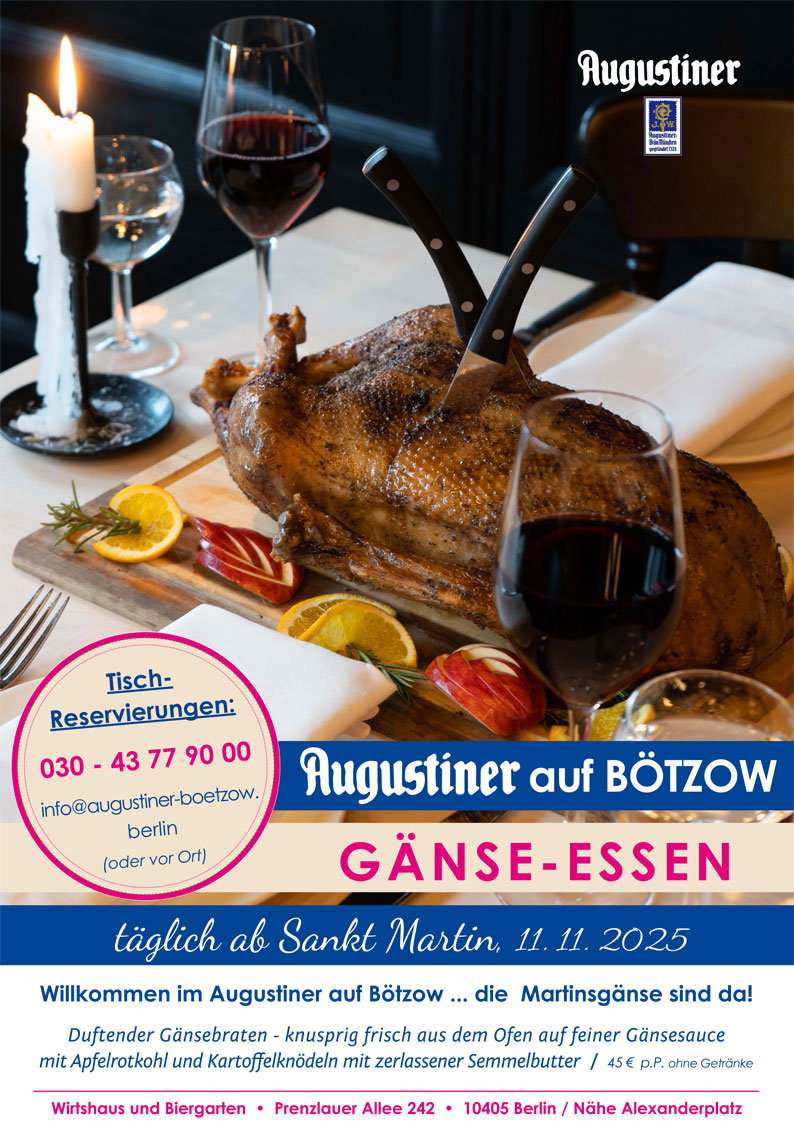 Ab November laden wir zum großen Gänseschmaus ein! Täglich im Advent bis Weihnachten bei uns im Augustiner auf Bötzow!